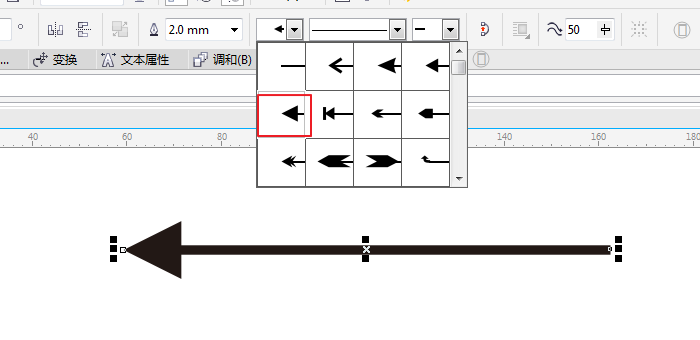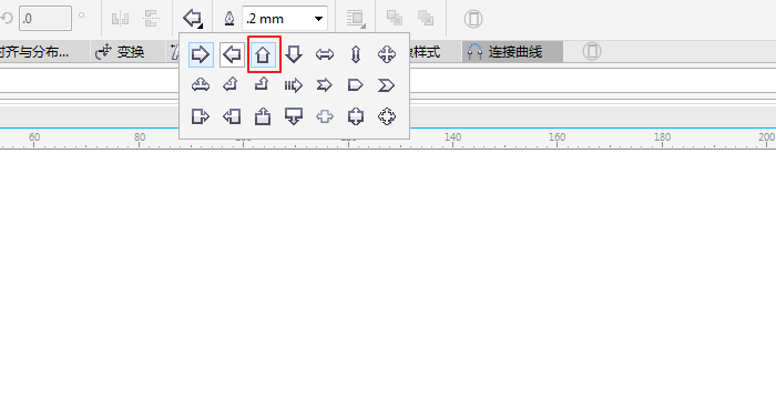 7、在cdr里也可以畫空心箭頭,我們在工具欄找到"箭頭形狀",然后選擇一種箭頭樣式,就可以畫出空心箭頭,如圖所示;