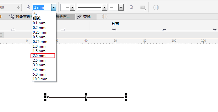 3、畫好之后,我們可以修改線的寬度,這里我們把線寬修改成兩毫米,如圖所示;