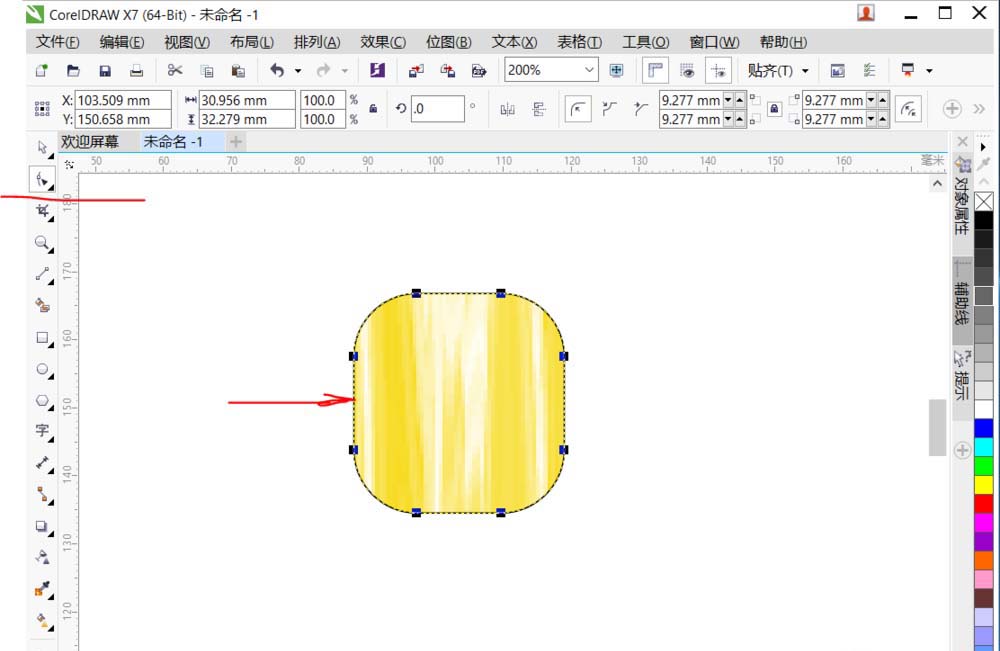 3、將矩形轉化為曲線,用形狀工具,點選矩形節點,拖動鼠標到合適松開,圓角矩形做出來了