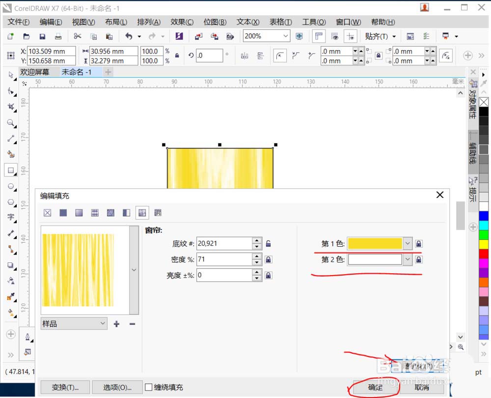 2、選擇編輯填充——底紋填充——窗簾,調整第一色為黃色,確定