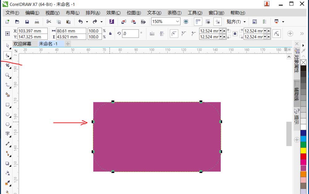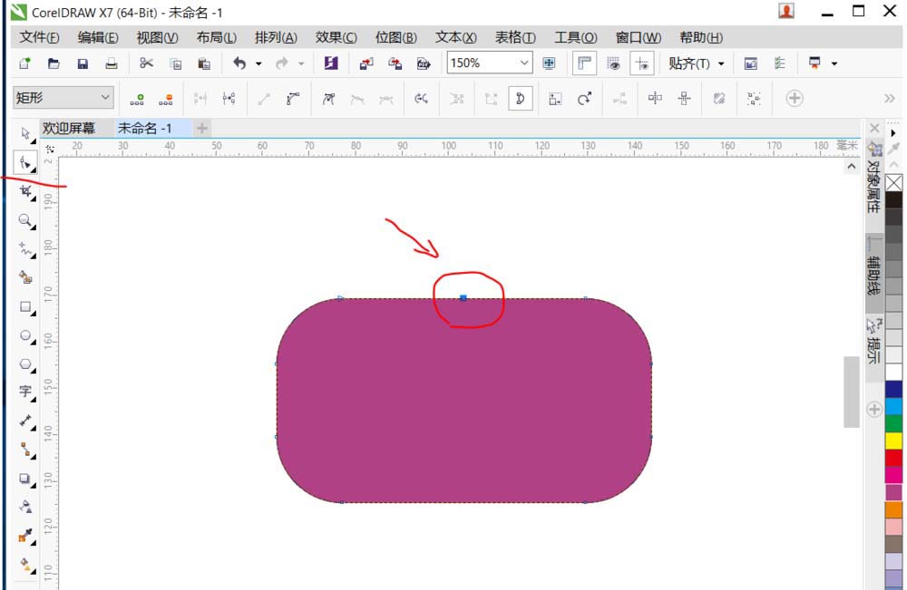 3、選擇形狀工具,點(diǎn)選矩形的一個(gè)節(jié)點(diǎn),拖動(dòng)鼠標(biāo)會(huì)形成圓角矩形