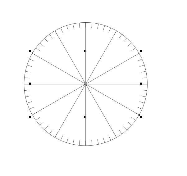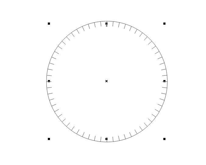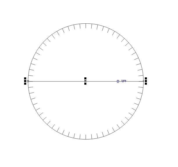 8、將步驟5的圓,復(fù)制一份再縮小,如圖。表的時(shí)間刻度便畫好了。