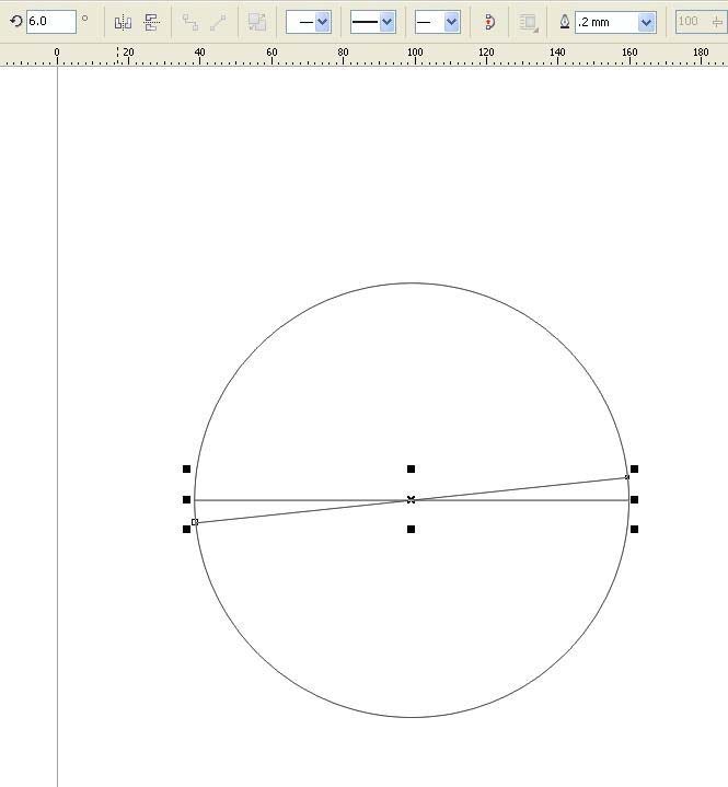 2、將直徑原處復(fù)制一份(+),在屬性欄里的旋轉(zhuǎn)角度填寫6。(360/60=6)