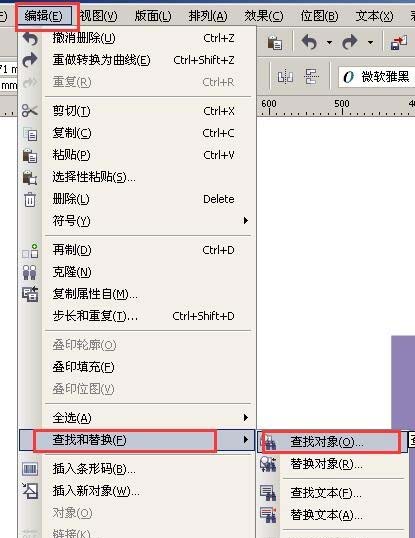 5、那就要把沒有轉曲的文字找出來,編輯→查找和替換→查找對象