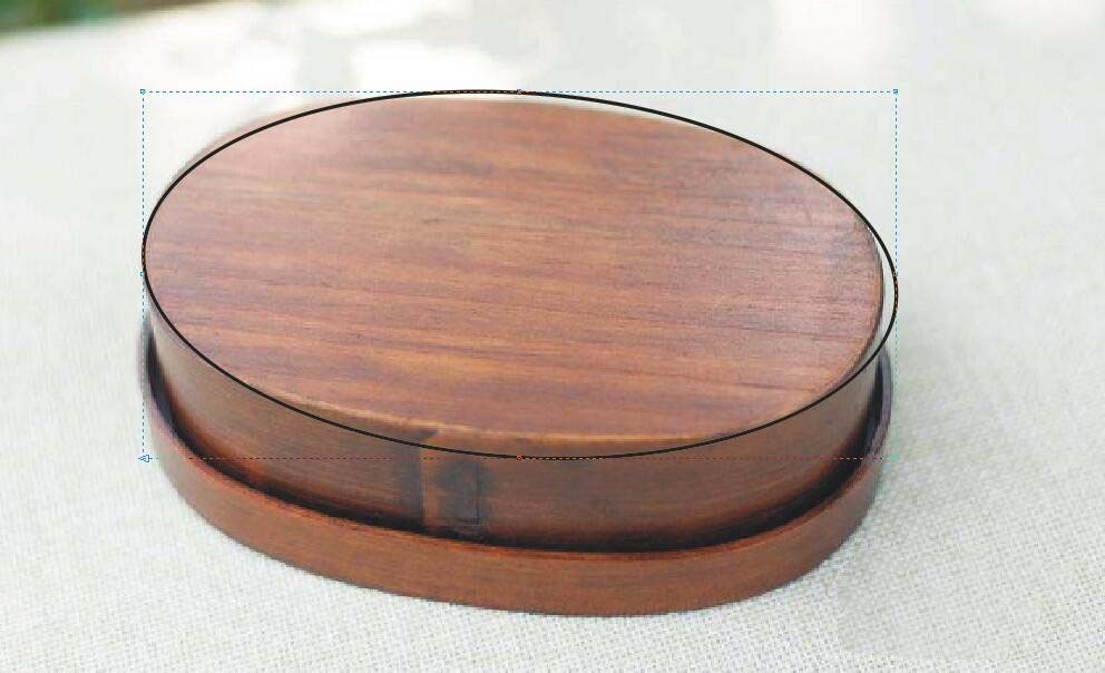 2、我們現在圖上畫一個跟它上表面差不多的橢圓形,旋轉一下角度,盡量與之吻合。