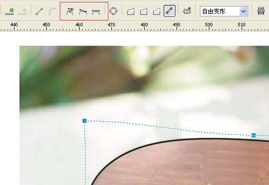 5、選擇形狀工具,調整封套上的節點和控制桿,使橢圓與欲描摹的圖形吻合。在右上角的屬性欄里可以選擇、改變節點的類型,更加靈活的調整封套的形狀。