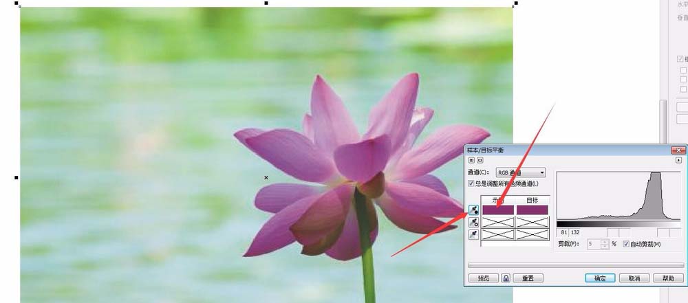 3、選擇左邊的實例顏色,用吸管吸取你想要改變顏色的區域,自動識別
