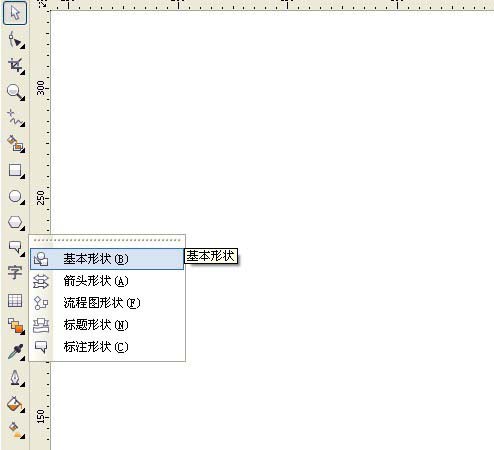 1、打開CorelDRAW軟件,新建一個空白的文件,鼠標左鍵單擊左邊工具箱中的【多種形狀工具】,可看到有基本圖形可以使用,如下圖所示。