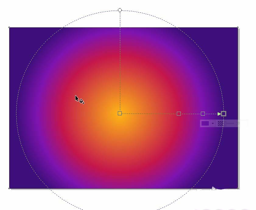 1、新建一個頁面A4,顏色模式RGB,橫向。雙擊矩形工具繪制一個和頁面等大的矩形,按F11,填充漸變色橢圓的①#3D0F7A②#7D14AE③#C3164B④#FEB715,按G調整漸變。