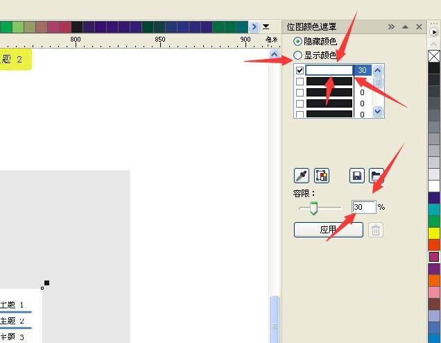 5、設置一下就可以了,可以隱藏圖片上任何一種顏色,而且可以同時隱藏多種顏色,我這里就選擇了白色,也就是要隱藏白色。顏色可以用吸管吸也可以用調色板調。下面的百分比看著弄就行了。最后點擊“應用”按鈕就可以了。