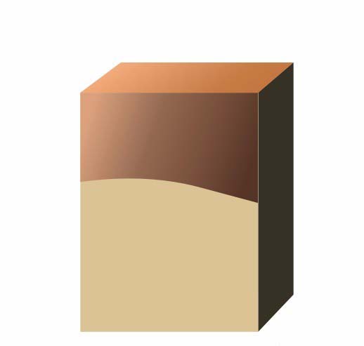 4、點擊挑選工具,點右鍵,拆分立體化群組。最前面的矩形填充顏色#DAC394;選中矩形,點擊屬性欄的取消全部群組。選擇頂上的矩形,按F11;填充線性漸變色數值分別為:位置0:#C2753E; 位置:28 :#C77C44;位置:100:#F9B383;點擊確定。如圖。