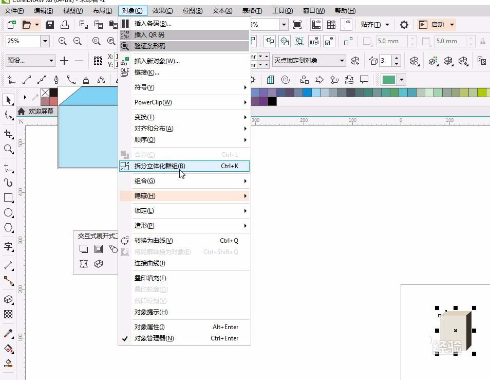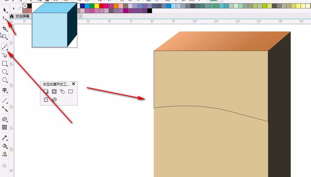 3、選擇立體化工具,在屬性欄預設更改為 【立體右上】深度為【3】;