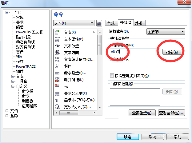 3、在新建快捷鍵這里輸入你要的快捷鍵,我這里設(shè)置的是Alt+T,注意輸入的時候 是直接按鍵盤上的“Alt“和”T”鍵,輸入好點擊指定
