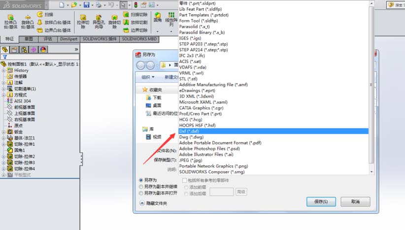 2、在彈出的保存文件格式中,選擇DXF格式。