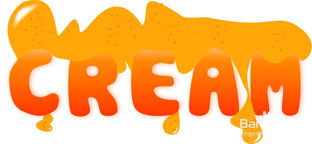 2、用貝塞爾工具,繪制奶油效果。選中上面的圖層,選擇合并。填充顏色R250 G184 B0。面。圖形前面。調(diào)整文字的漸變效果。