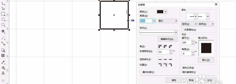 3、用矩形工具繪制一個矩形如圖。按F12,選擇細線。如圖。
