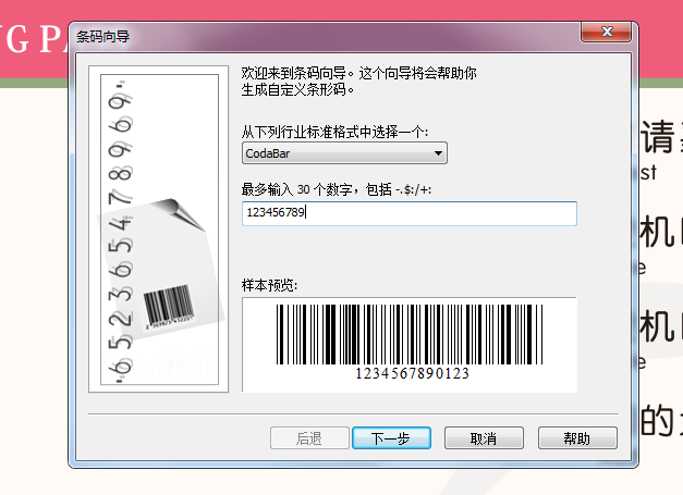 8、插入條碼,點擊編輯里的倒數第四個條碼,參數設置如圖