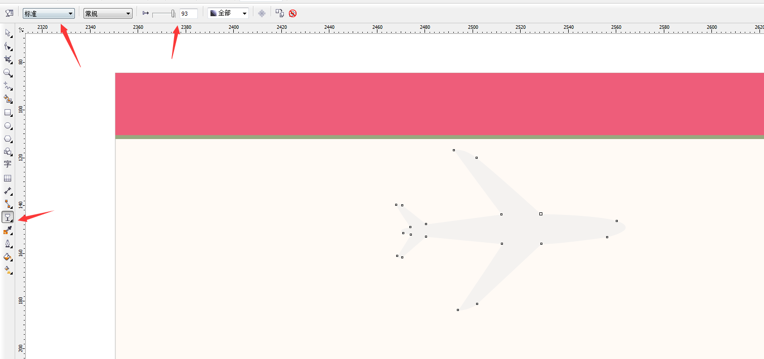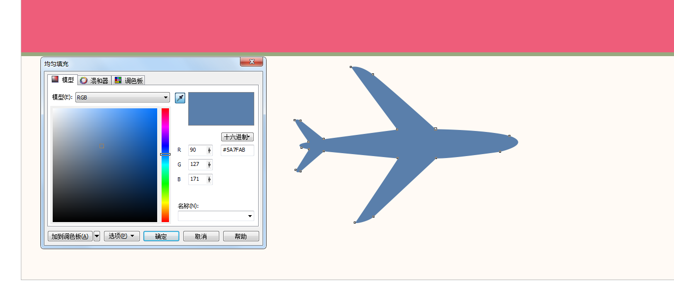 3、既然是航班必須得有飛機啊,所以用貝賽爾繪制一個飛機形狀,填充顏色,如圖