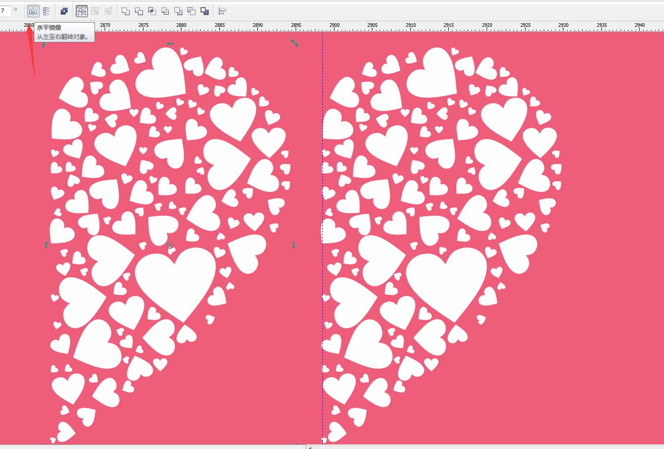 12、把繪制好的心形全部選中群組復制一份水平鏡像放到左邊,如圖