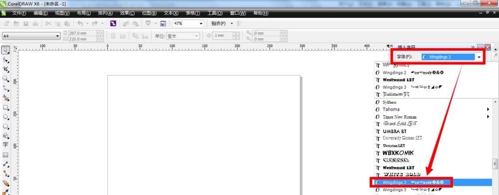 4、假設(shè)我們選擇了“wingdings2”這種字體,出現(xiàn)了與之對(duì)應(yīng)的符號(hào)字符如圖所示