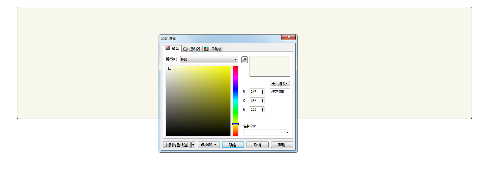 1、矩形工具繪制一個(gè)矩形,填充顏色,我喜歡用RGB模式顏色比較鮮艷,如果要噴繪或者印刷請(qǐng)注意一定要用CMYK,如圖