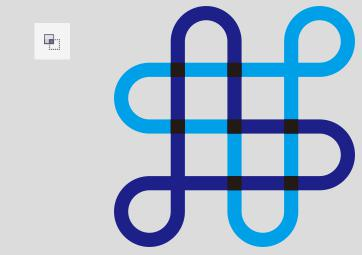 框選所有圖形,選擇屬性欄上“創(chuàng)建邊界”按鈕,設(shè)置輪廓寬度為5mm,選擇“對象”>“將輪廓轉(zhuǎn)換為對象”(為了便于看清下面的步驟,給對象換個顏色),然后將原來的圖形刪除,效果如下。