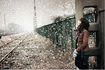 6、把用鋼筆摳出來的圖片,貼齊在添加雪花效果的圖片上。