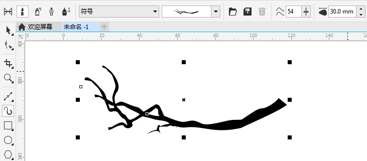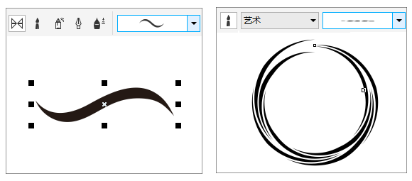 2、選擇路徑,然后切換到藝術筆工具,在屬性欄上選擇一種筆刷就可以將路徑應用當前的藝術筆效果了。