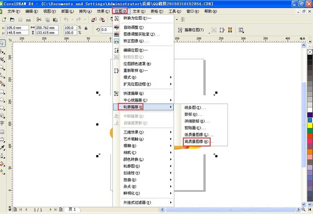 4、選中圖片,位圖-輪廓描摹-高質(zhì)量圖像(有好幾種每個效果不同,看自己需要了)