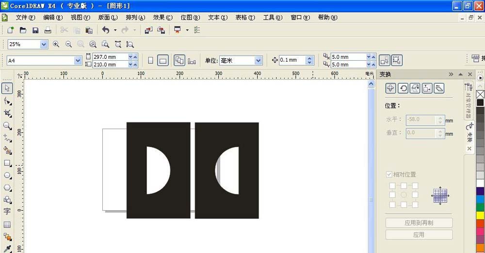 3、為矩形填充黑色,然后框選兩個圖形,選擇變換,比例大小,然后選擇應用到再復制,如圖