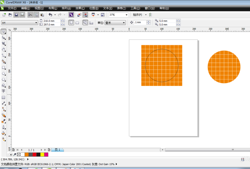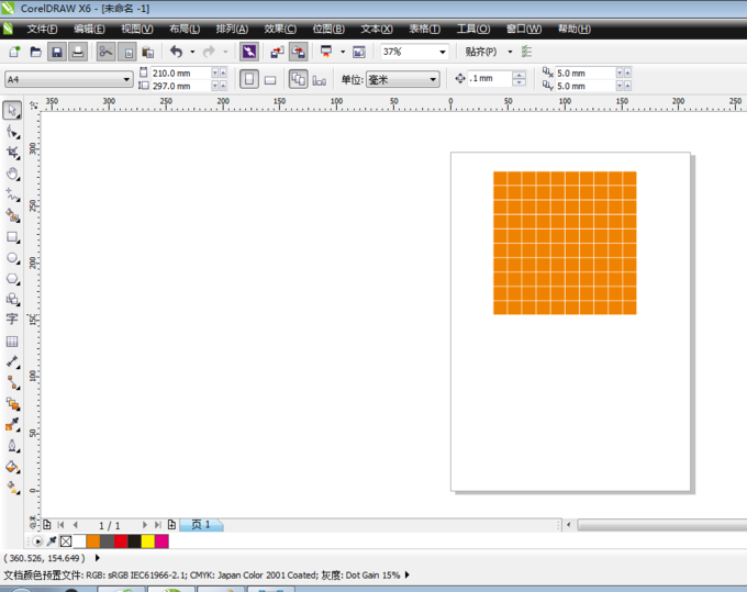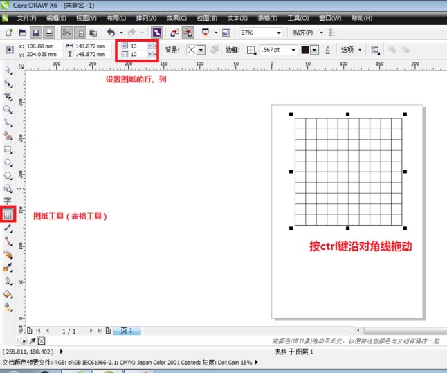 1、新建文件,單擊圖紙工具(coreldrawX6中是表格工具),繪制一個10*10的表格。