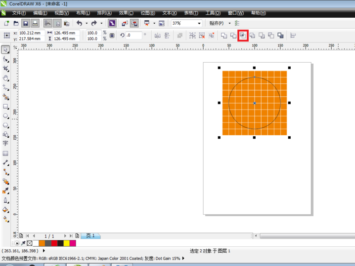 4、單擊挑選工具,選中表格和橢圓,單擊屬性欄的相交按鈕。
