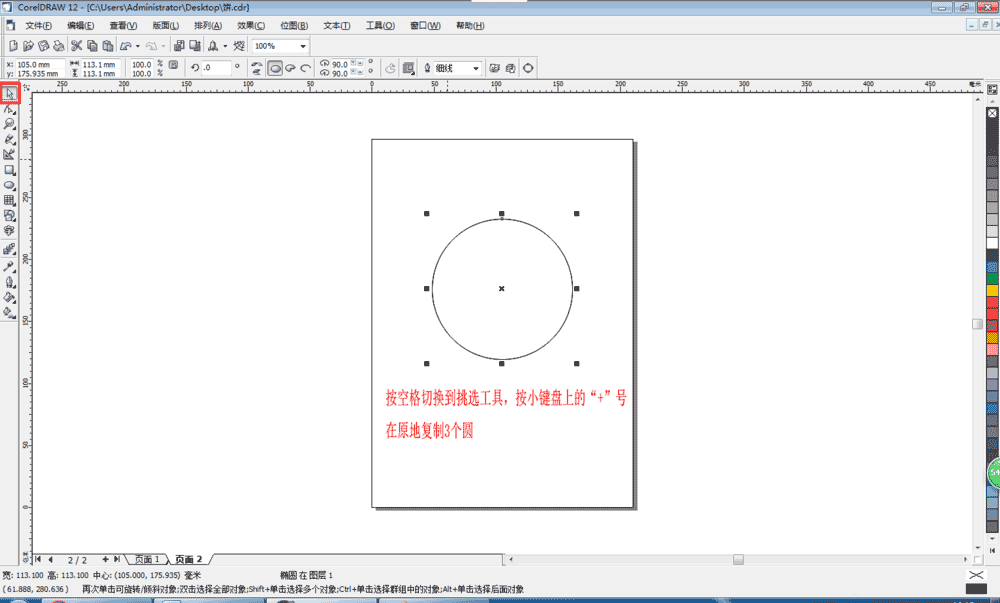 3、按空格鍵切換到挑選工具,并按小鍵盤上的“+”號,在原地復制三個圓。