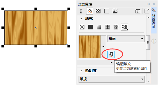 總之,類似這中木紋效果的紋理就好了,關于調色可以根據自己愛好;關于紋理填充,你可以通過“對象屬性”泊塢窗進行查看,單擊“編輯填充”按鈕即可。