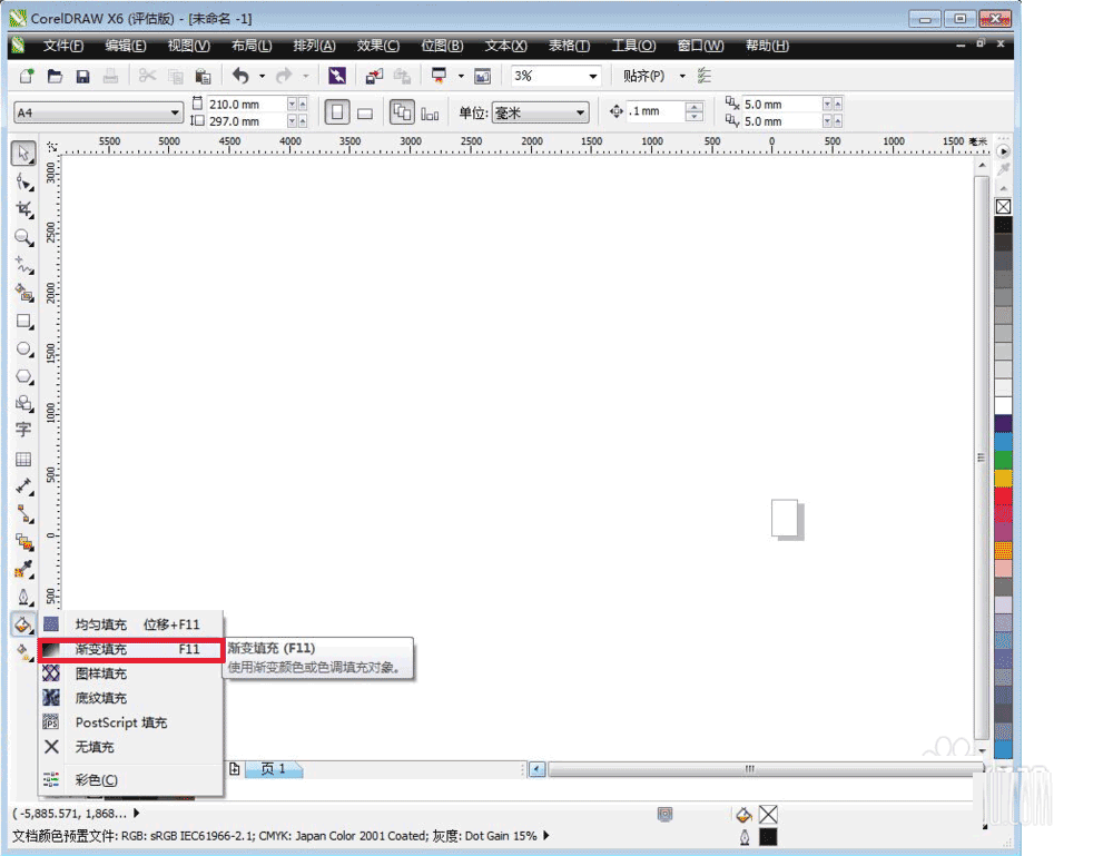 2、點擊左側工具欄中的填充工具,選擇第二項漸變填充選項。