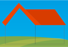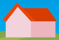 使用工具箱中的【貝塞爾工具】繪制如圖所示圖形,使用工具箱中的【均勻填充】工具,分別設置房頂顏色的CMYK為(0,96,91,0)及(8,100,96,0),填充圖形,并去除圖形的輪廓線。
