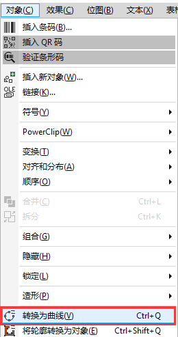 或者,在“對象”菜單欄下,選擇“轉換為曲線”命令,也可以在屬性欄中操作,這個看平時的操作習慣。