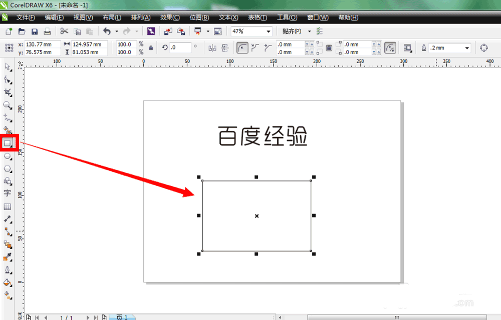 2、隨意使用矩形工具在頁面上畫出一個(gè)矩形