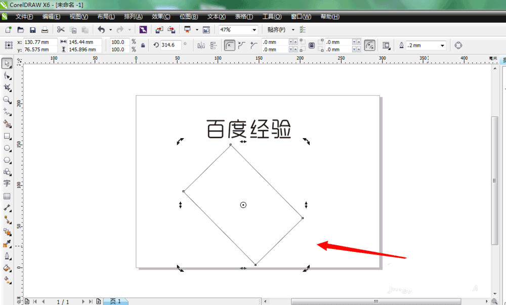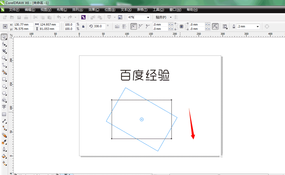 7、待我們松手以后,就可以看到矩形被旋轉(zhuǎn)傾斜了