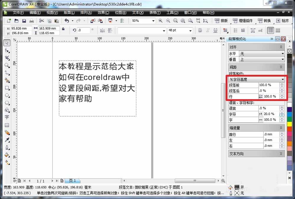 教程介紹,以上就是coreldraw怎么設置字體行間距、段間距方法介紹,操作很簡單的,大家學會了嗎?希望這篇文章能對大家有所幫助!