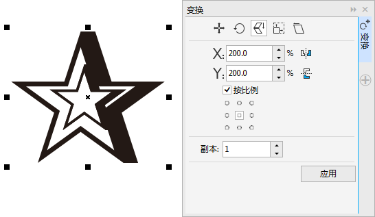 按比例復制對象即CorelDRAW中的縮放功能,能夠精確地調整對象的大小及對象之間的相對位置,具體方法是選取對象后,執行菜單欄“泊塢窗口>變換>縮放與鏡像”命令,按照要求調整面板的設定值,然后按下“應用”按鈕即可。