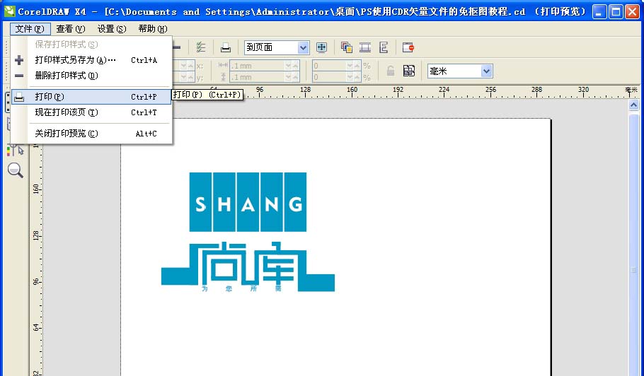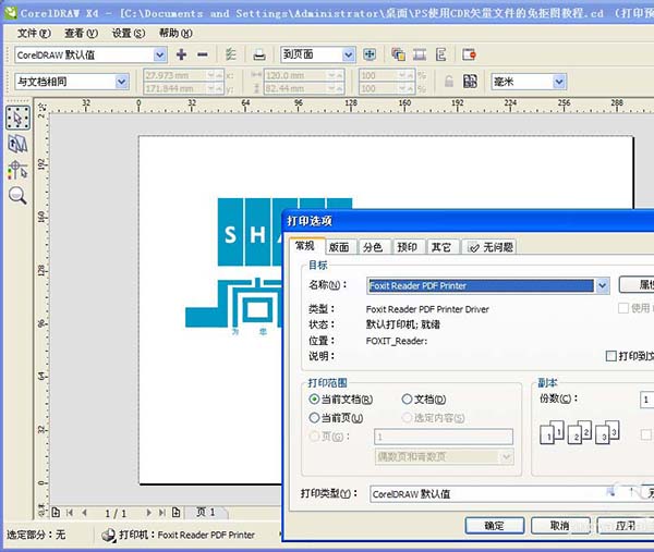 4、接下來,文件-打印,保存一個名字(按個人喜歡或者文件需要).PS后綴的文件 到此CDR軟件完工,接下來轉(zhuǎn)入PS軟件。