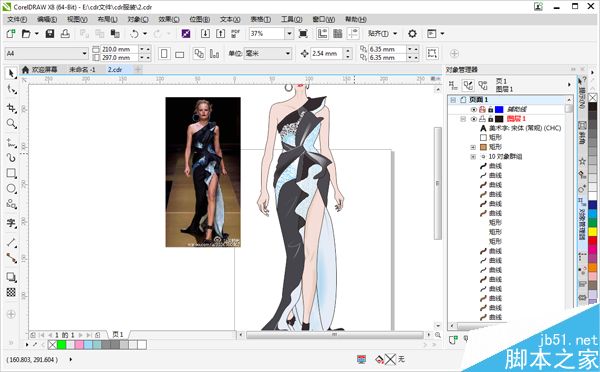 1. 雙擊打開CorelDRAW X8軟件,Ctrl+O任意打開一個(gè)繪圖,或者在頁(yè)面中做任意繪圖。