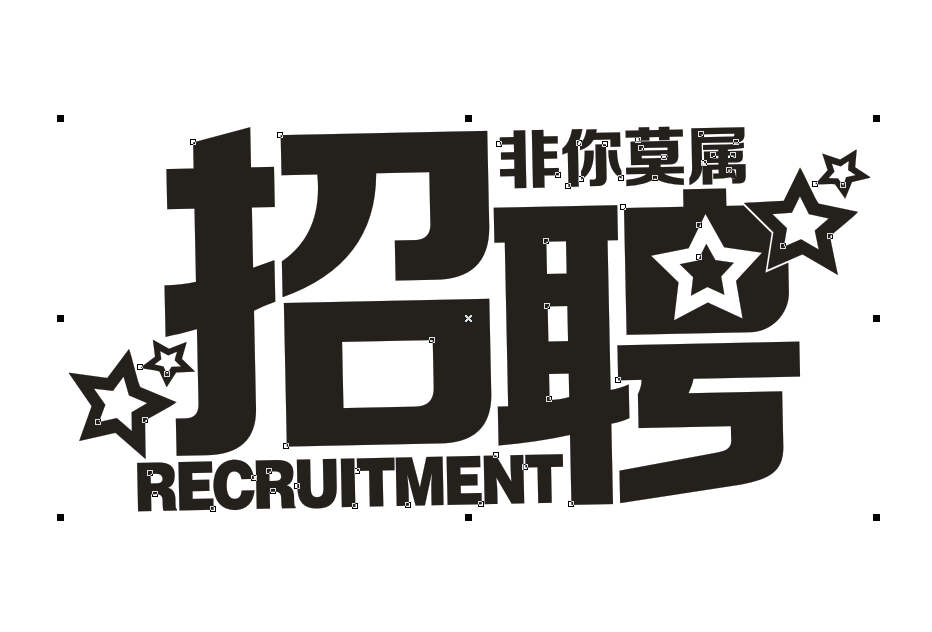 第五、除了招聘這個大標題,可適當加一些小標題,加上裝飾圖案五角星組合如下。