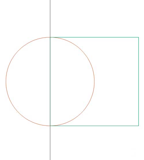 然后在畫一個100mm長寬的正方形,先選中正方形按住shift鍵在選中豎線,按下E鍵在按下L鍵,得到如圖所示。