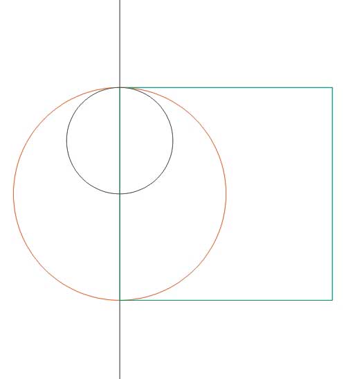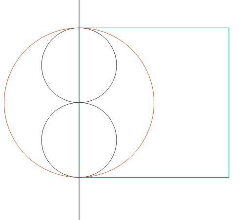 然后在畫一條豎線,超過100mm就可以了,豎線與圓同時選中時按下C鍵在按E鍵居中;