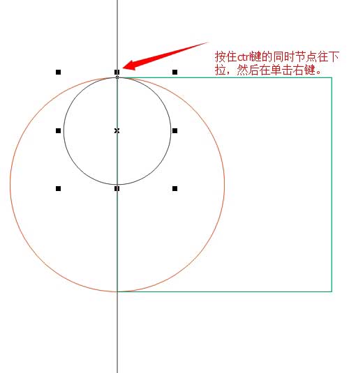3、然后選中這個小正圓,按住ctrl的同時該節點往下拉在單擊右鍵。