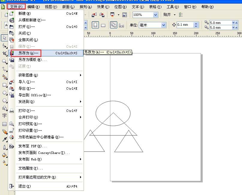 3、然后將CorelDRAW文件保存為AI格式。文件-另存為-AI格式文件,然后點擊保存。