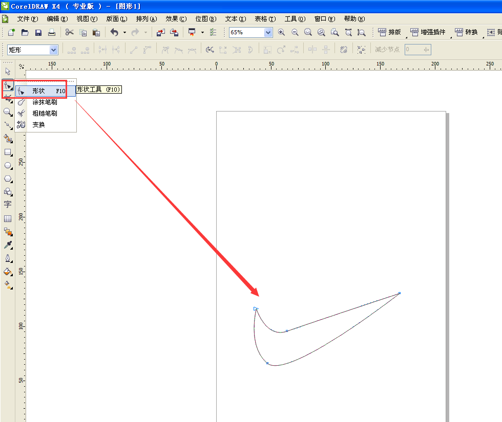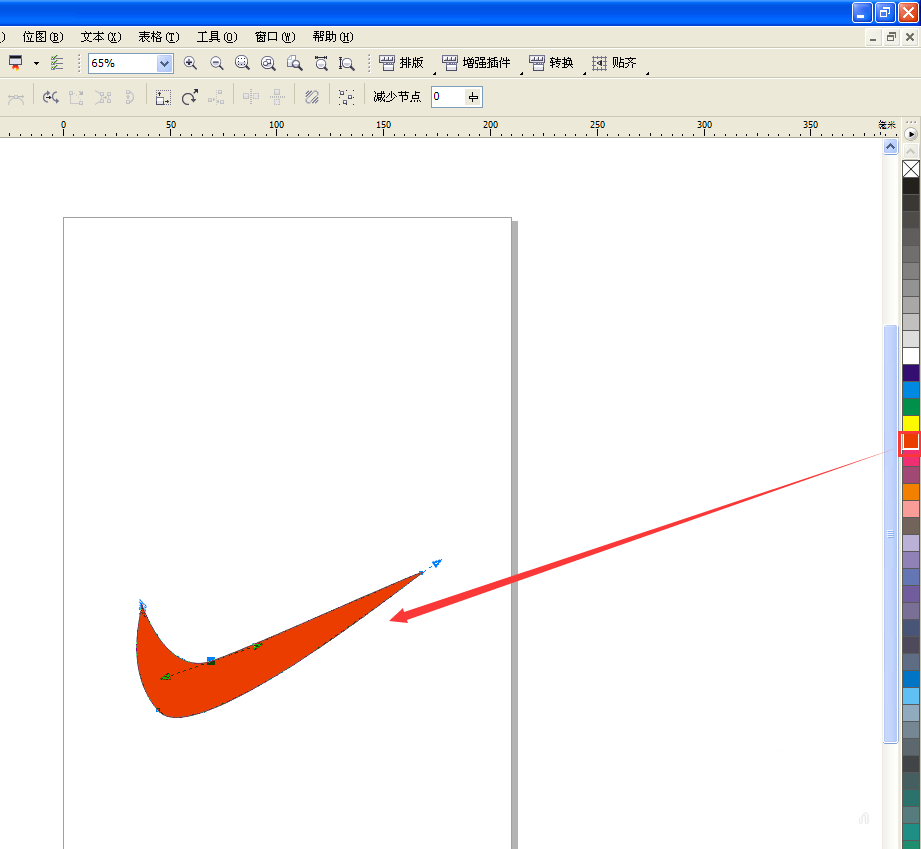 6、調節好之后,用鼠標左鍵在右邊選擇紅色,進行填充。如果覺得不滿意,還可以繼續用形狀工具進行調節,也可以拖動點上的控制桿進行調節。
