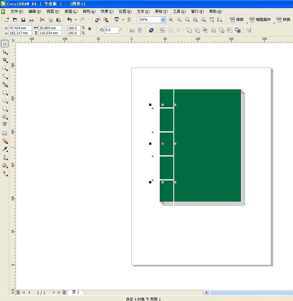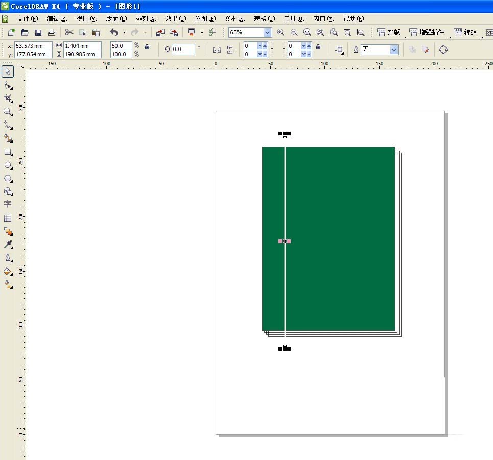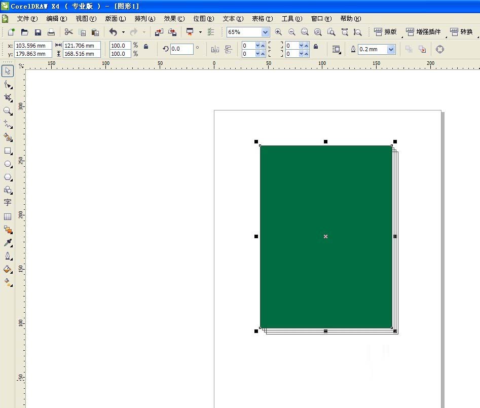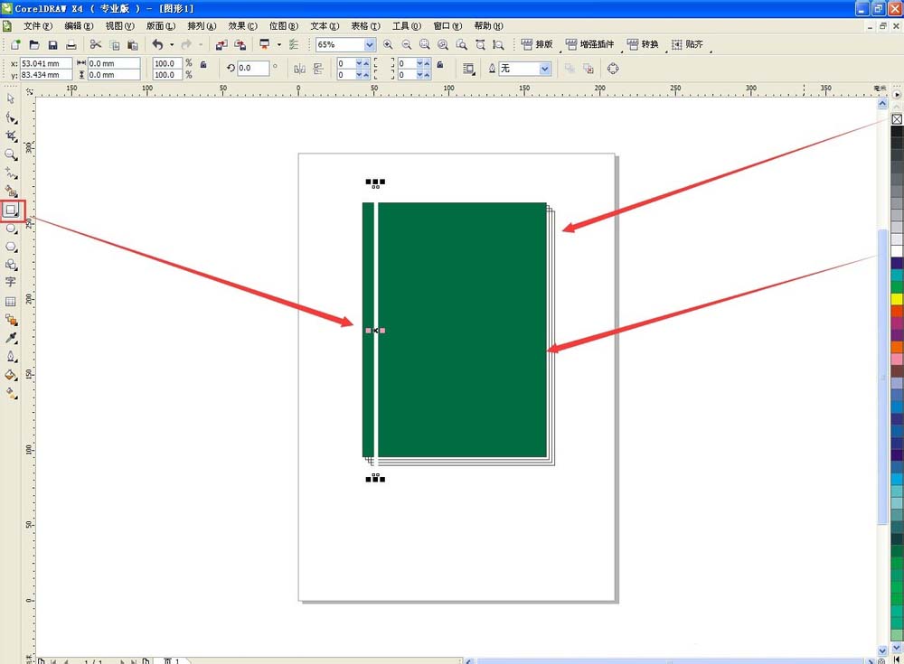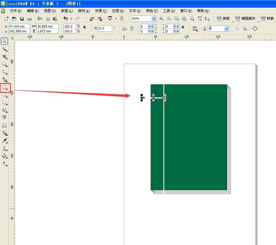 1、打開CorelDRAW軟件。用矩形工具繪制一個矩形,然后用挑選工具,拖動鼠標往左上角復制一個,然后按Ctrl+D再制幾個。選擇最上面那個矩形,填充綠色。